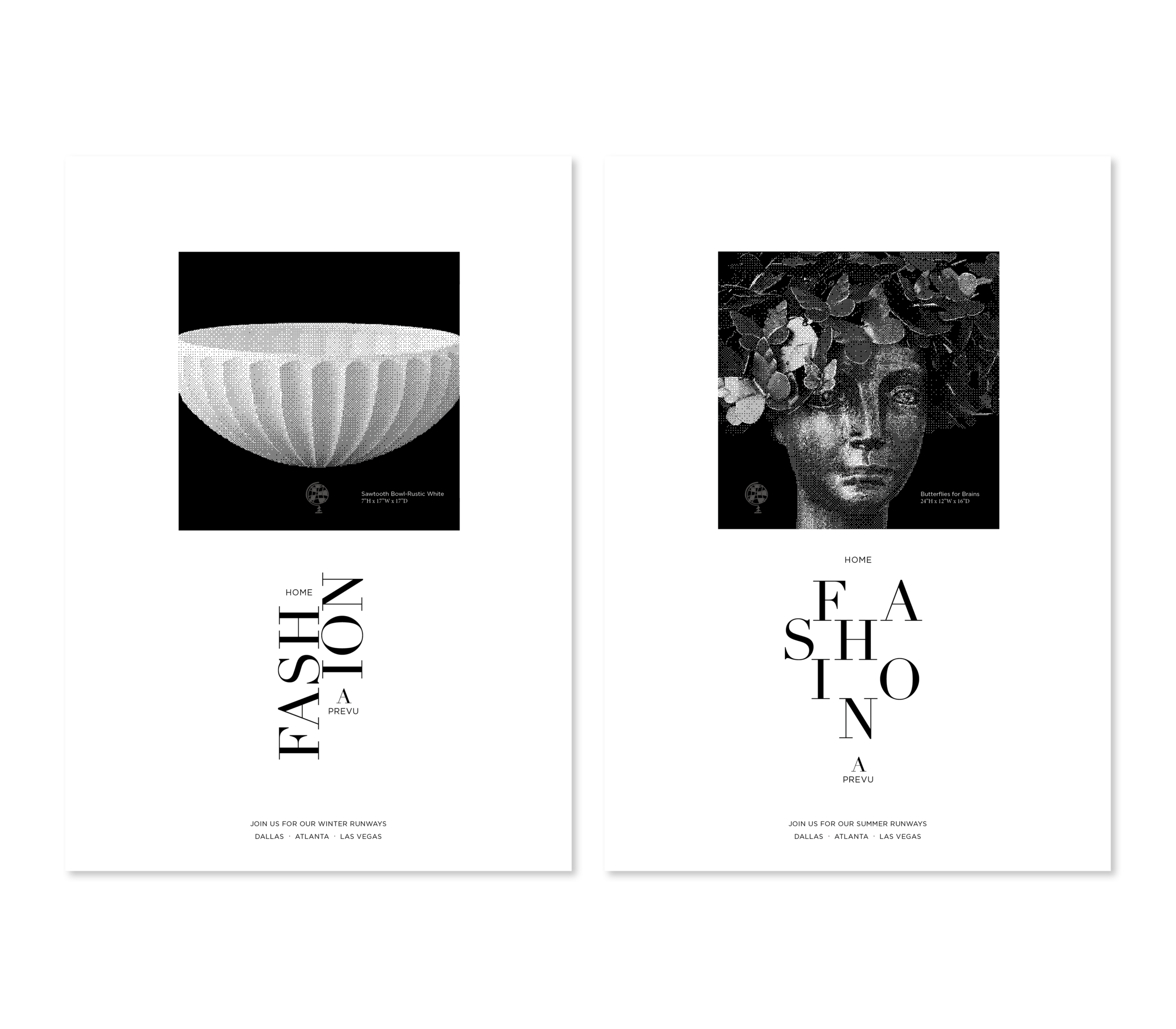 In 2022, I refreshed our market press kits with a new B/W concept cover that incorporated a cropped single product image with Brutalist halftone effect. I designed a different typographic solution for the title of each press kit iteration throughout the year. Didot was introduced to the style guide at this time.